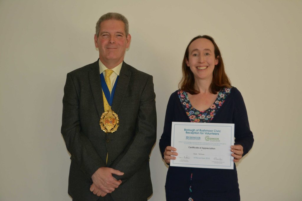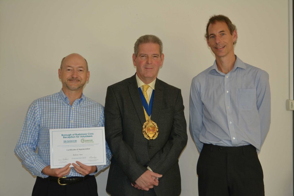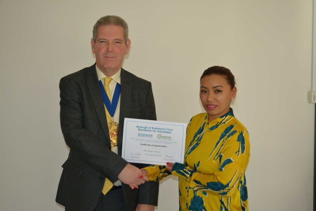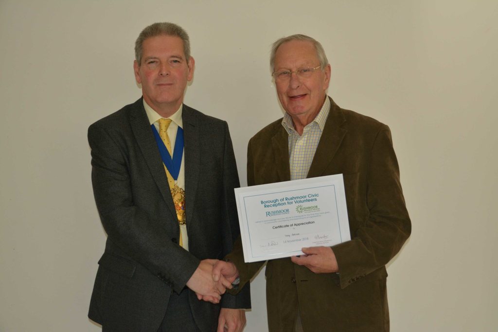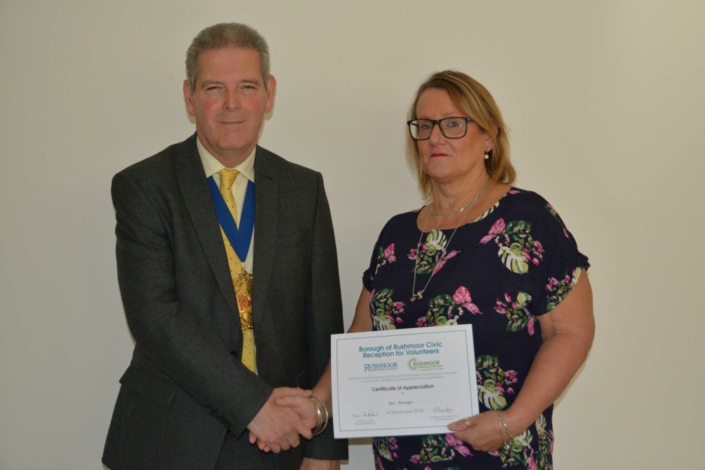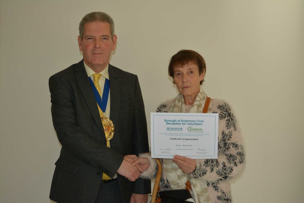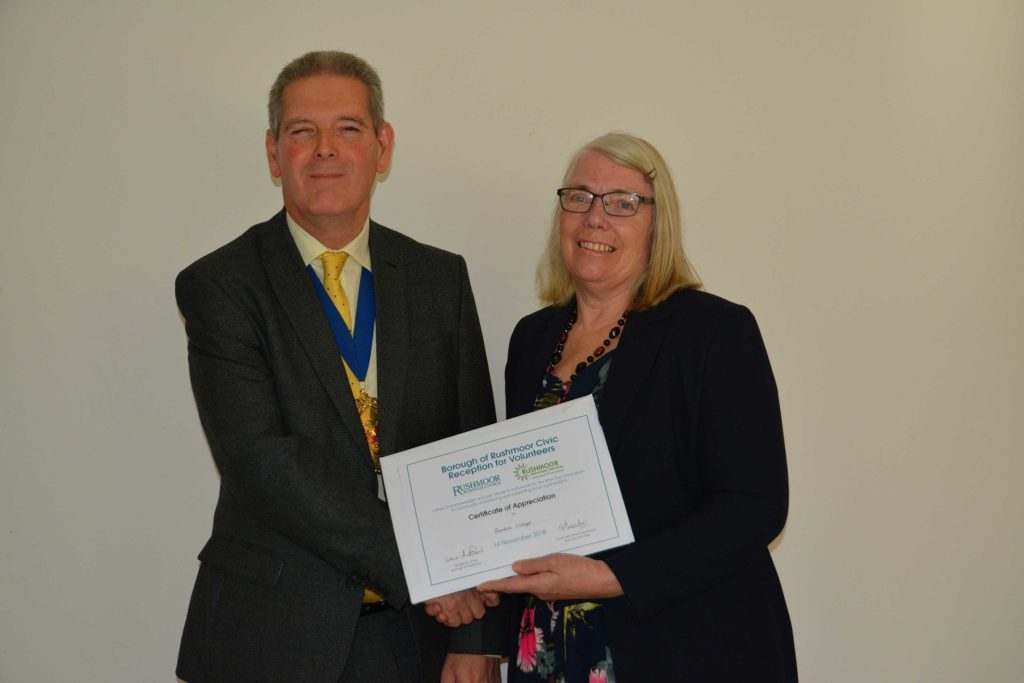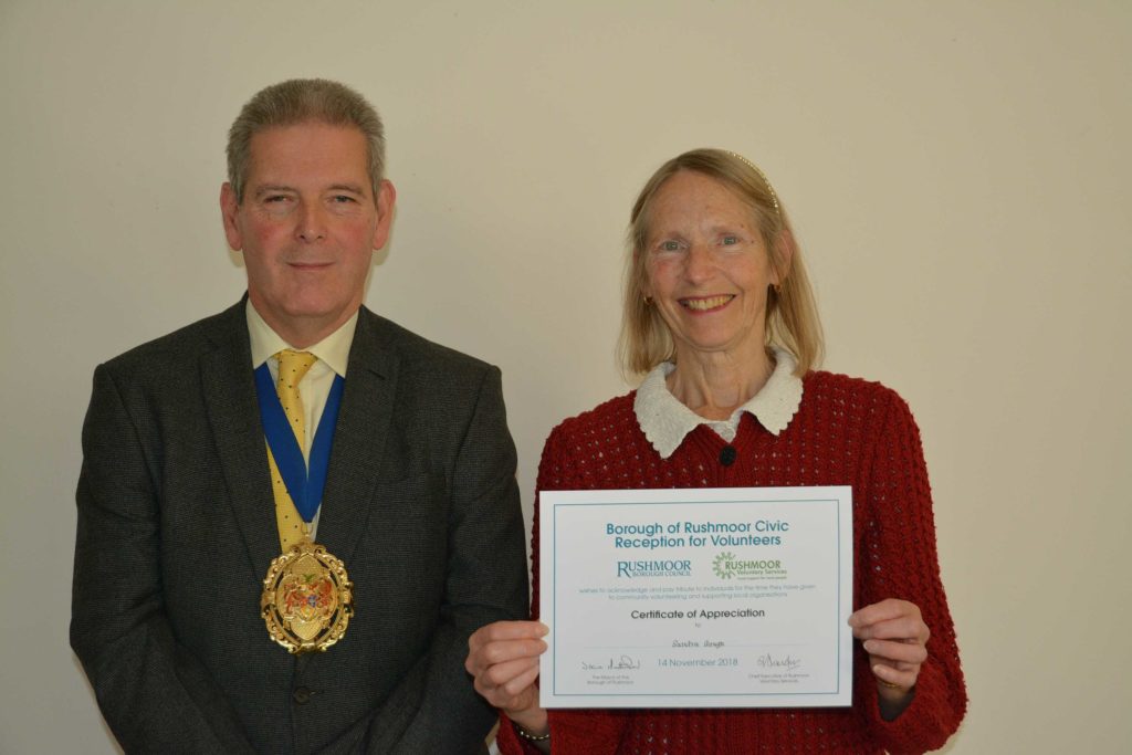 Volunteers who support local voluntary groups and charities in Rushmoor were given formal recognition and thanks for their contribution to the community at an Awards Ceremony held in Farnborough on 14th November 2018.