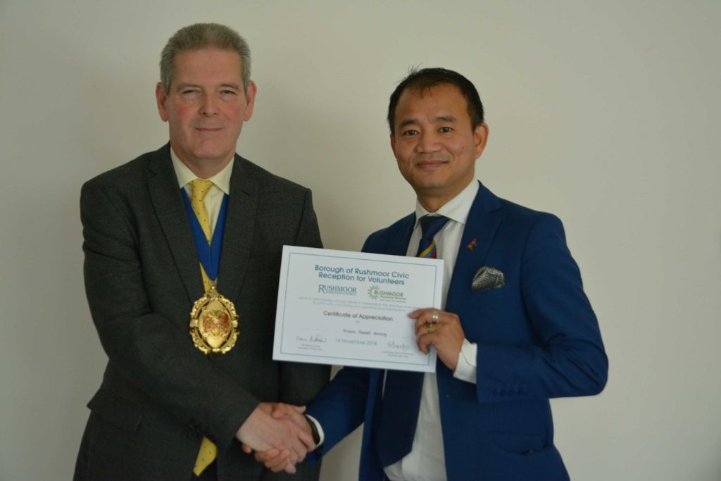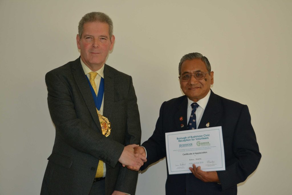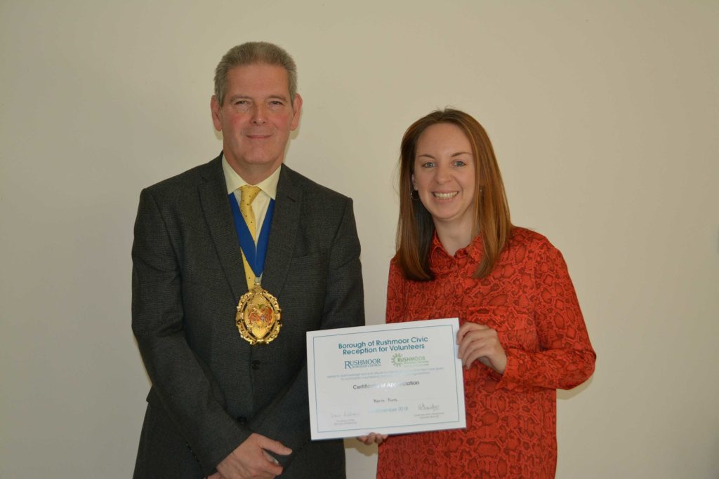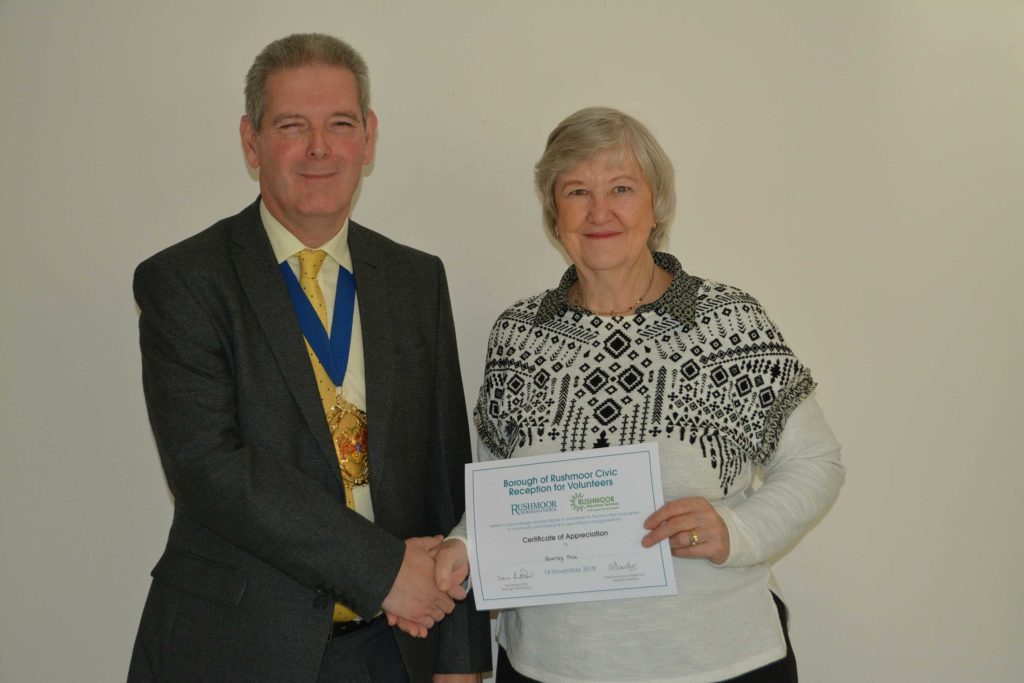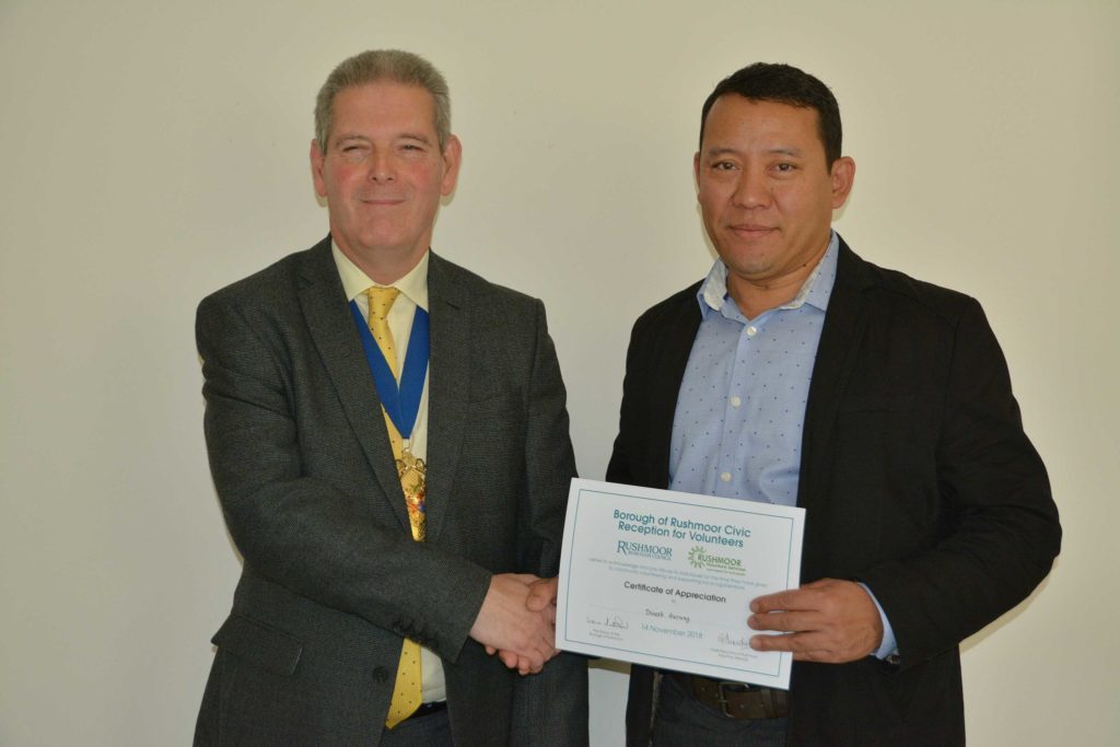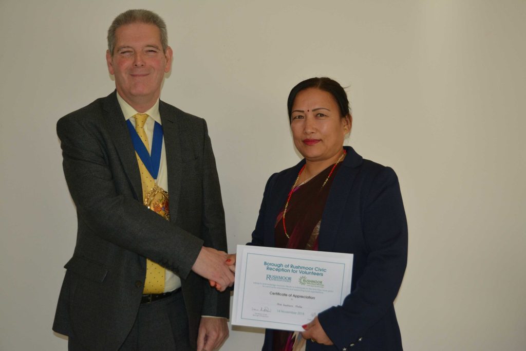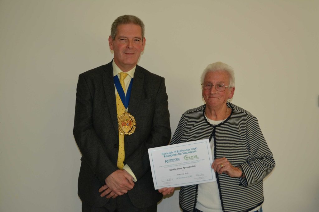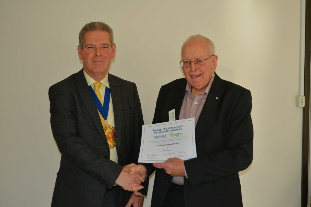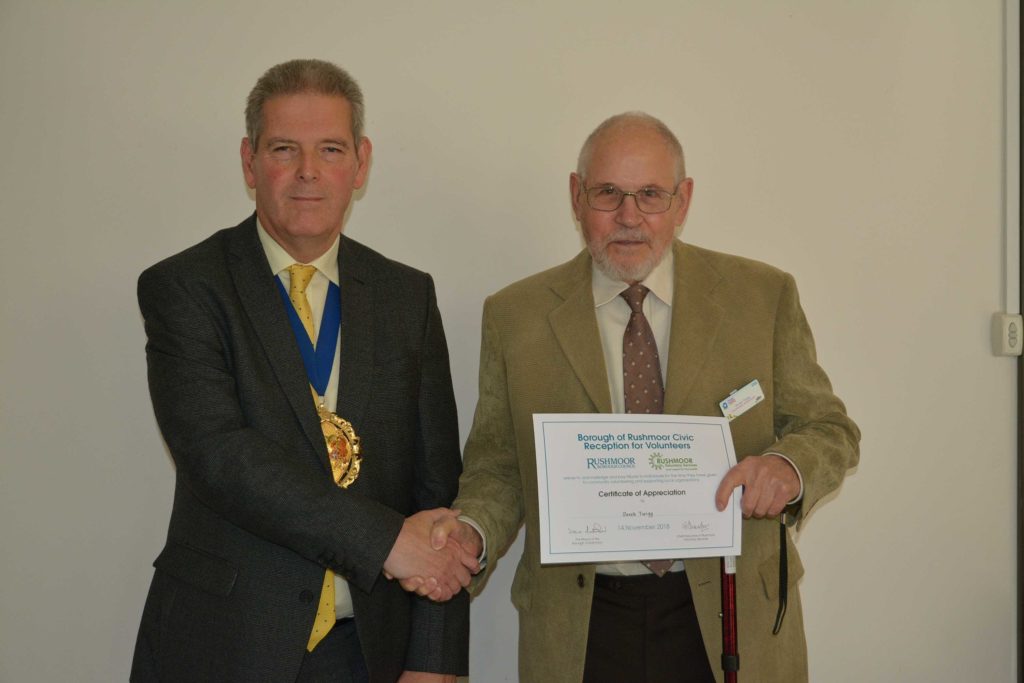 Volunteers who support local voluntary groups and charities in Rushmoor were given formal recognition and thanks for their contribution to the community at an Awards Ceremony held in Farnborough on 14th November 2018.